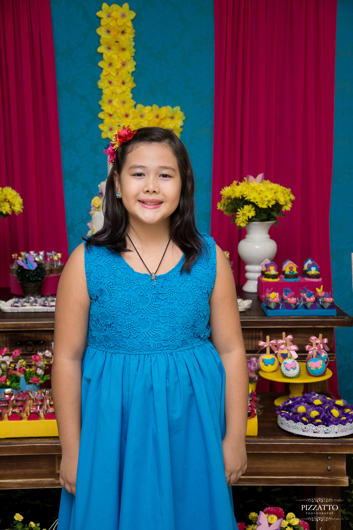 Ela é doce de menina, queria muito aproveitar a festa com as suas amigas, enquanto aguardamos um pouco os convidados chegarem, tirei algumas fotos da aniversariante sozinha na mesa, logo que percebi que as amigas chegaram chamei todas para tirarmos fotos legais em frente a decoração, e tentar deixa-las mais a vontade durante a festa com a minha presença, deu super certo. Confira as fotos.