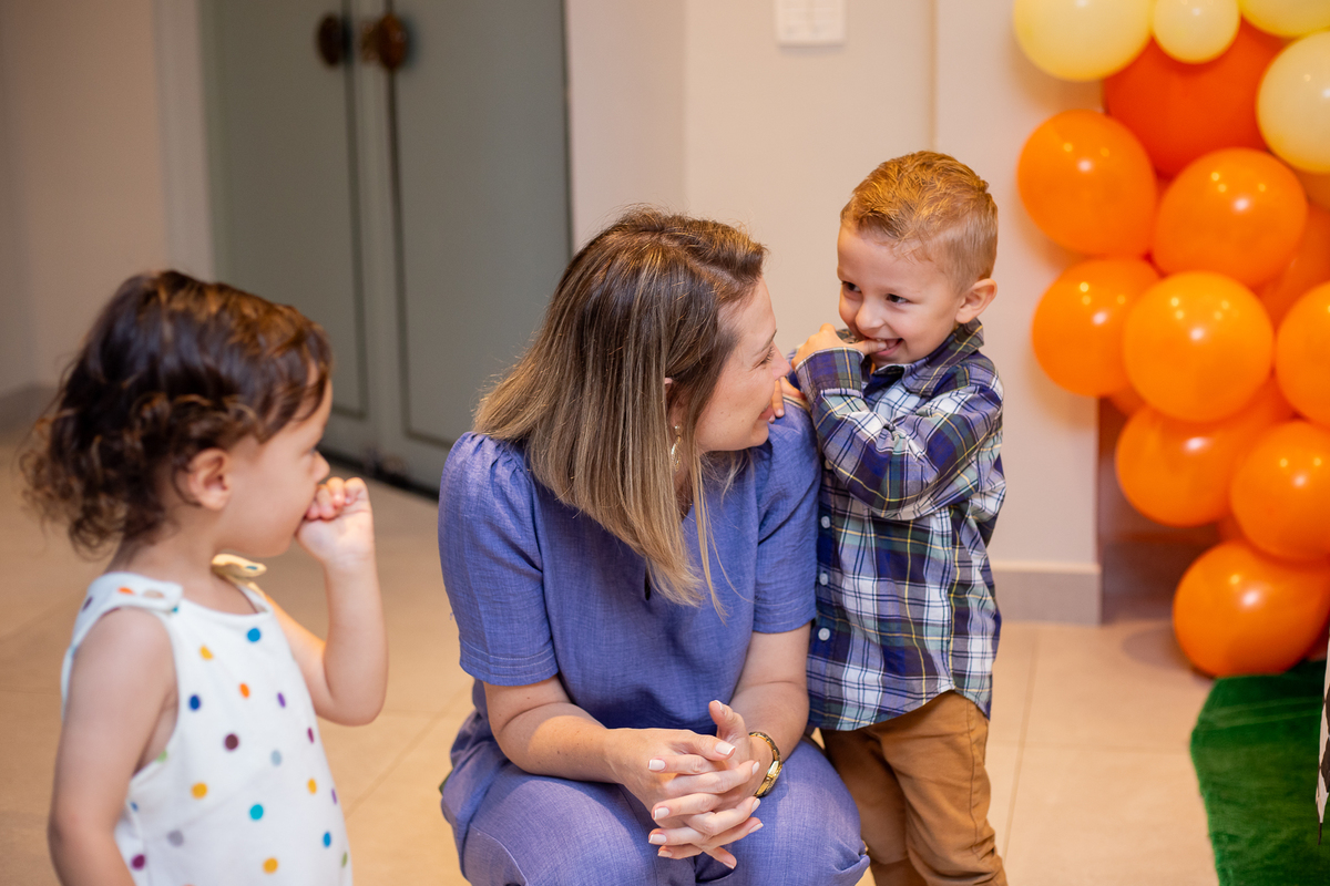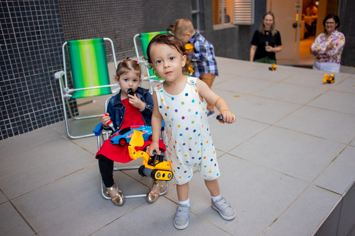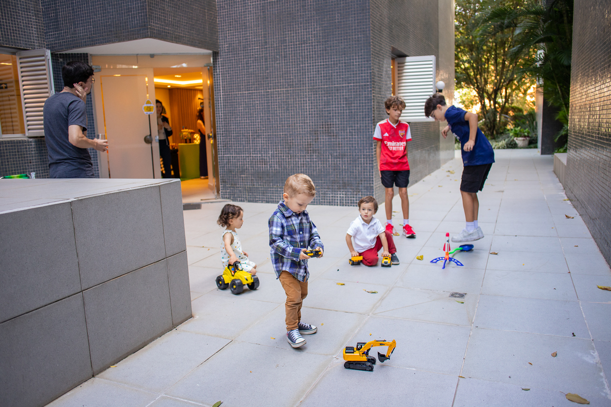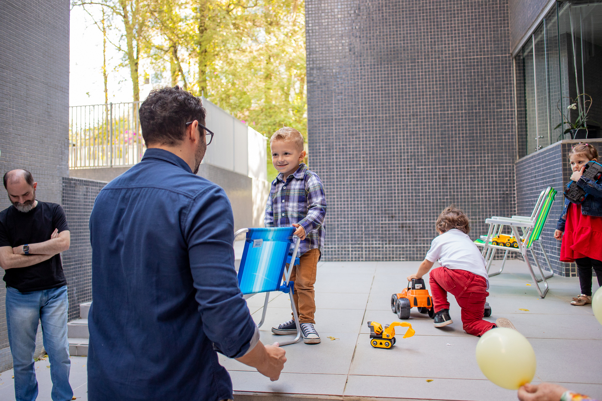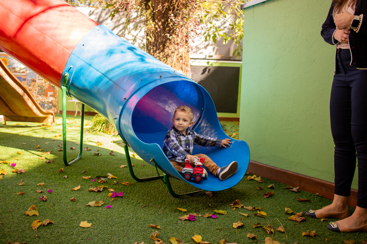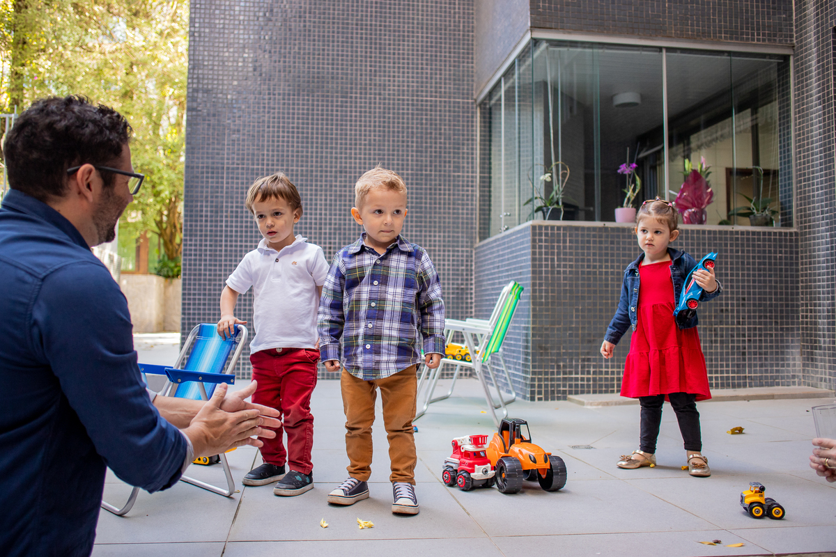 Quando cheguei ao local da festa fui logo apresentada ao Caio, ele me olhou meio de lado, todo tímido e estava brincando com o seu carrinho preferido, (o carrinho do bombeiro), eu já aproveitei que ainda não tinham chego todos os convidados e logo fui fazer amizade com ele, brincamos de pega pega, ele me mostrou todos os seus carrinhos, sugeri algumas brincadeiras e aproveitamos para fazer fotos com a mamãe e com o papai, posso dizer que só nesse momento já tivemos ótimos registros, mas eu não estava esperando pela turminha de amigos que chegou logo em seguida. Geeeeente que galerinha inteligente, vocês podem acompanhar pelas fotos, as trocas de olhares, abraços, as brincadeiras, como eles se comunicam e interagem muito bem, nesse momento eu deixei fluir, fiquei só de longe, e o Caio aproveitou cada momento, me mostrou o parquinho, o bosque, ficou um pouco com a vovó e com a madrinha também, depois de brincar muuuito tiramos algumas fotos com os convidados e logo catamos o parabéns, acredita tivemos uma entrega especial de docinhos feita pelo próprio aniversariante? Muito fofo né? Logo depois brincaram muuuito com os balões e foram jogar bola, e acreditem eles jogam muito bem! E ai será que crianças pequenas não aproveitam a festa? Bom, tirem suas próprias conclusões, rs... Gratidão a família por confiar em meu trabalho, adorei conhecer vocês.