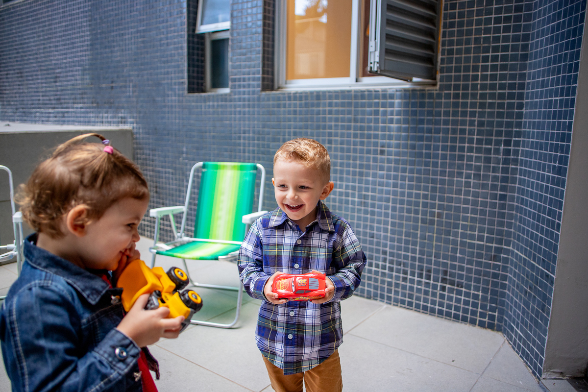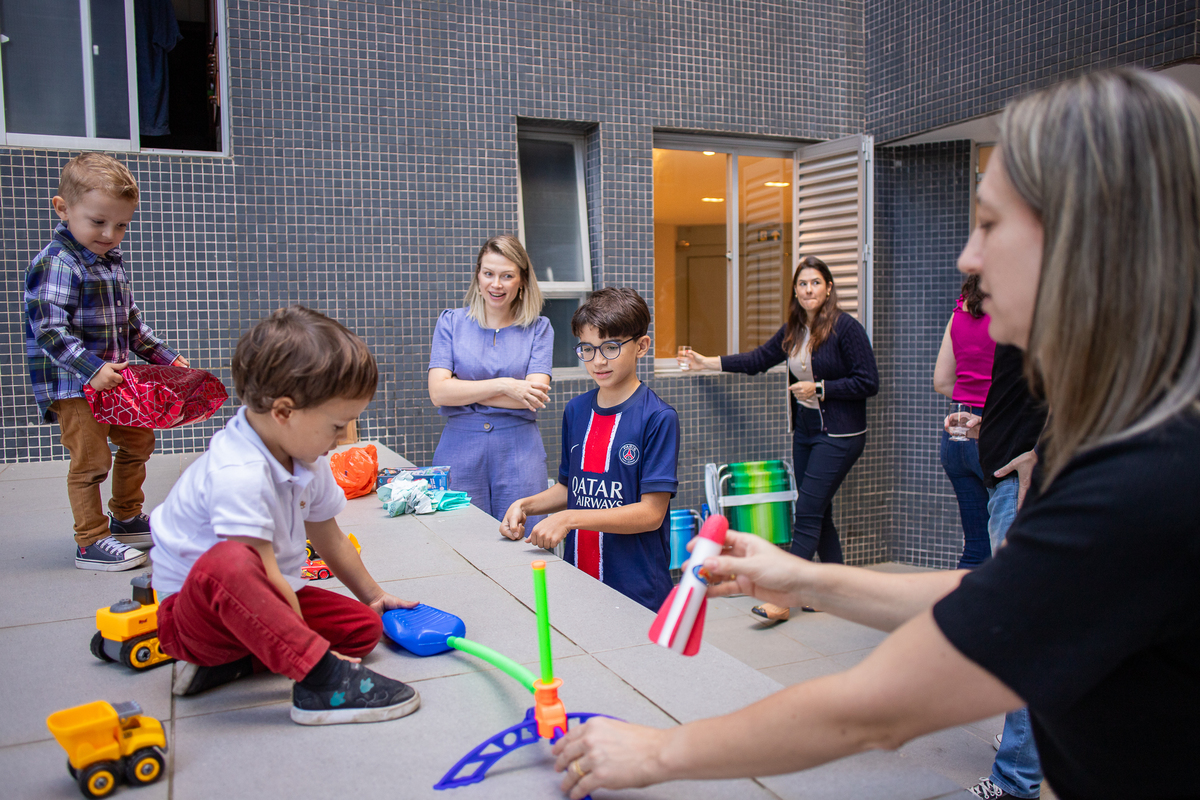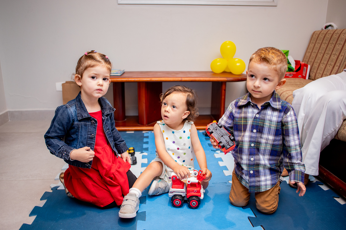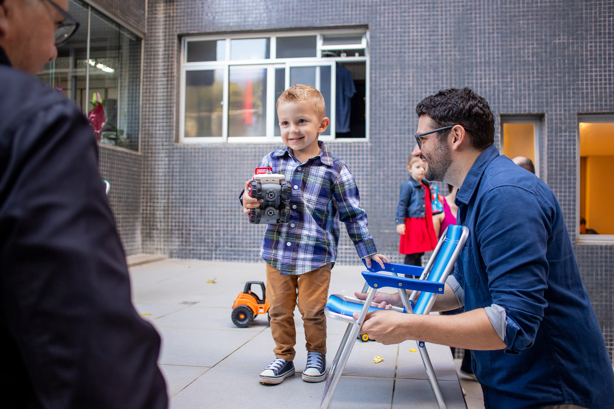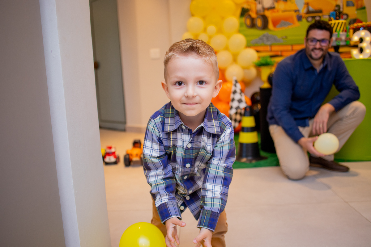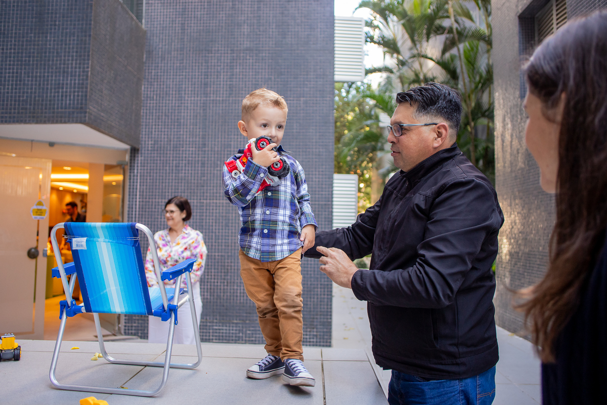 Quando cheguei ao local da festa fui logo apresentada ao Caio, ele me olhou meio de lado, todo tímido e estava brincando com o seu carrinho preferido, (o carrinho do bombeiro), eu já aproveitei que ainda não tinham chego todos os convidados e logo fui fazer amizade com ele, brincamos de pega pega, ele me mostrou todos os seus carrinhos, sugeri algumas brincadeiras e aproveitamos para fazer fotos com a mamãe e com o papai, posso dizer que só nesse momento já tivemos ótimos registros, mas eu não estava esperando pela turminha de amigos que chegou logo em seguida. Geeeeente que galerinha inteligente, vocês podem acompanhar pelas fotos, as trocas de olhares, abraços, as brincadeiras, como eles se comunicam e interagem muito bem, nesse momento eu deixei fluir, fiquei só de longe, e o Caio aproveitou cada momento, me mostrou o parquinho, o bosque, ficou um pouco com a vovó e com a madrinha também, depois de brincar muuuito tiramos algumas fotos com os convidados e logo catamos o parabéns, acredita tivemos uma entrega especial de docinhos feita pelo próprio aniversariante? Muito fofo né? Logo depois brincaram muuuito com os balões e foram jogar bola, e acreditem eles jogam muito bem! E ai será que crianças pequenas não aproveitam a festa? Bom, tirem suas próprias conclusões, rs... Gratidão a família por confiar em meu trabalho, adorei conhecer vocês.