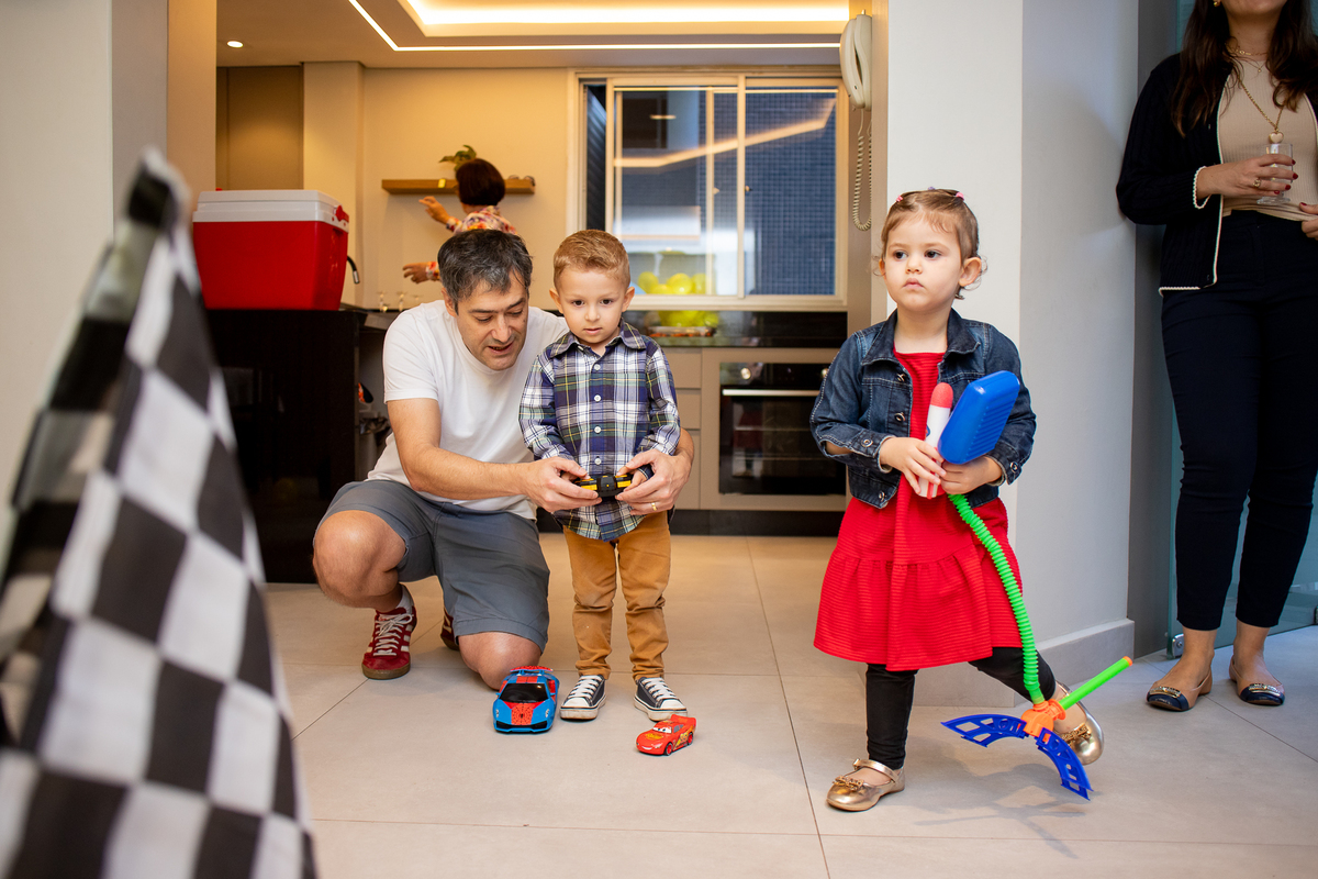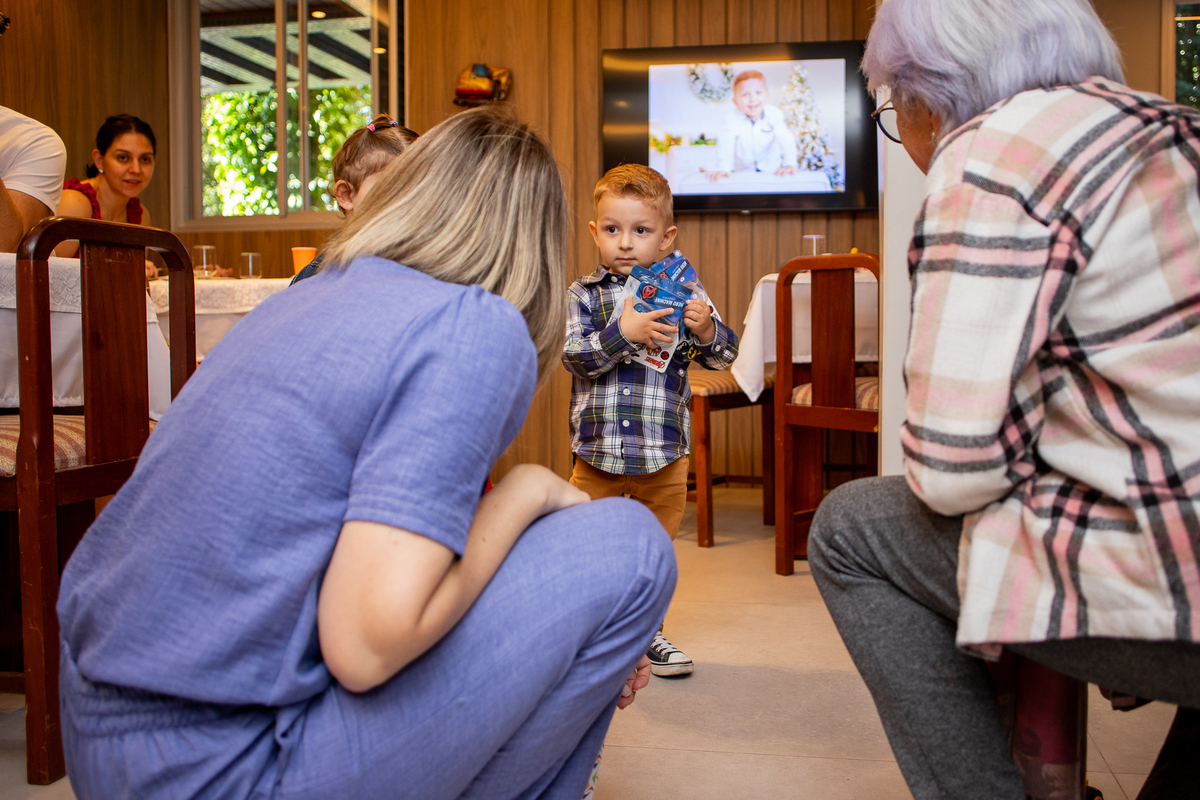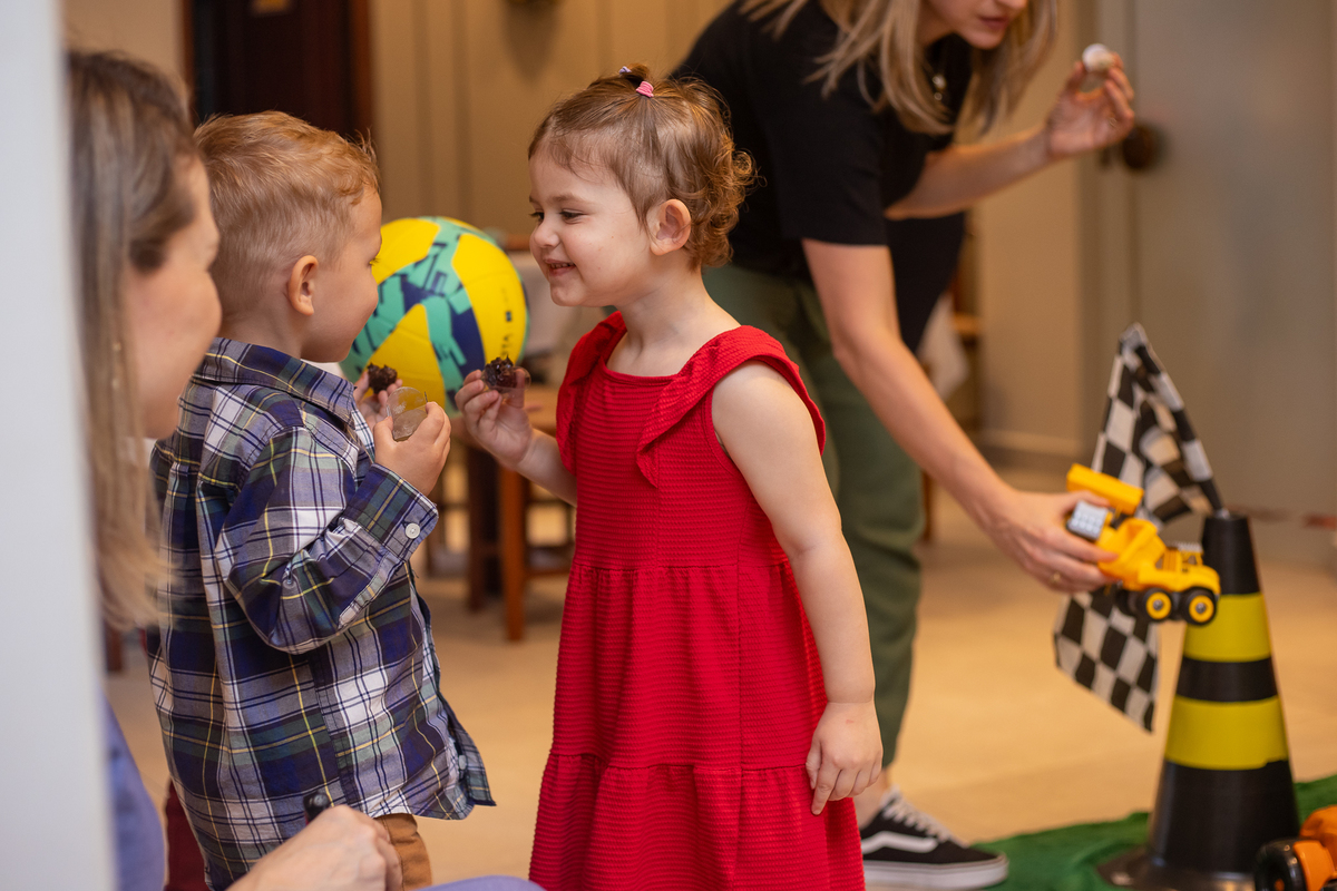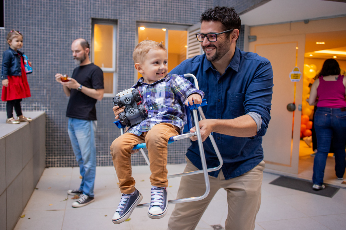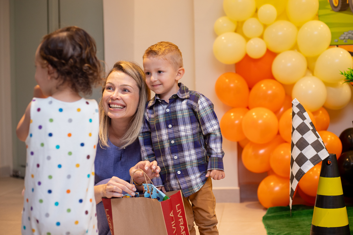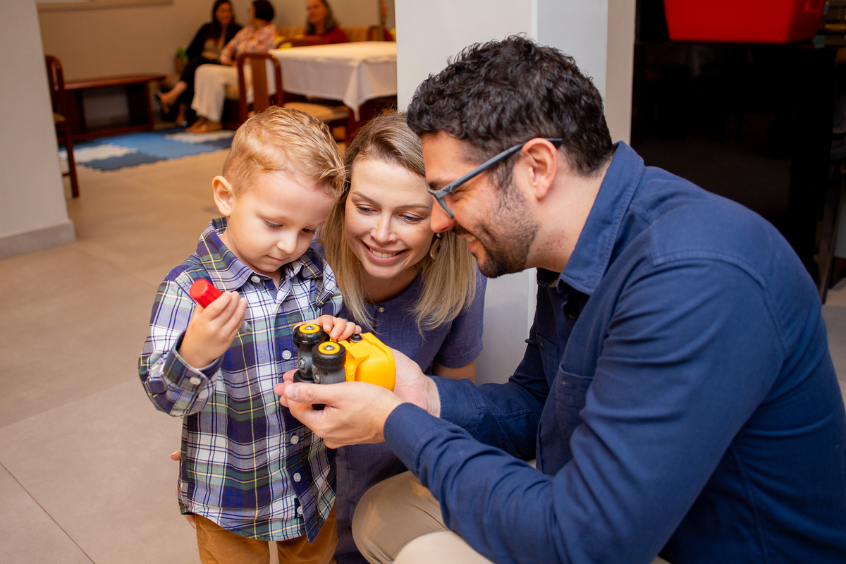 Quando cheguei ao local da festa fui logo apresentada ao Caio, ele me olhou meio de lado, todo tímido e estava brincando com o seu carrinho preferido, (o carrinho do bombeiro), eu já aproveitei que ainda não tinham chego todos os convidados e logo fui fazer amizade com ele, brincamos de pega pega, ele me mostrou todos os seus carrinhos, sugeri algumas brincadeiras e aproveitamos para fazer fotos com a mamãe e com o papai, posso dizer que só nesse momento já tivemos ótimos registros, mas eu não estava esperando pela turminha de amigos que chegou logo em seguida. Geeeeente que galerinha inteligente, vocês podem acompanhar pelas fotos, as trocas de olhares, abraços, as brincadeiras, como eles se comunicam e interagem muito bem, nesse momento eu deixei fluir, fiquei só de longe, e o Caio aproveitou cada momento, me mostrou o parquinho, o bosque, ficou um pouco com a vovó e com a madrinha também, depois de brincar muuuito tiramos algumas fotos com os convidados e logo catamos o parabéns, acredita tivemos uma entrega especial de docinhos feita pelo próprio aniversariante? Muito fofo né? Logo depois brincaram muuuito com os balões e foram jogar bola, e acreditem eles jogam muito bem! E ai será que crianças pequenas não aproveitam a festa? Bom, tirem suas próprias conclusões, rs... Gratidão a família por confiar em meu trabalho, adorei conhecer vocês.